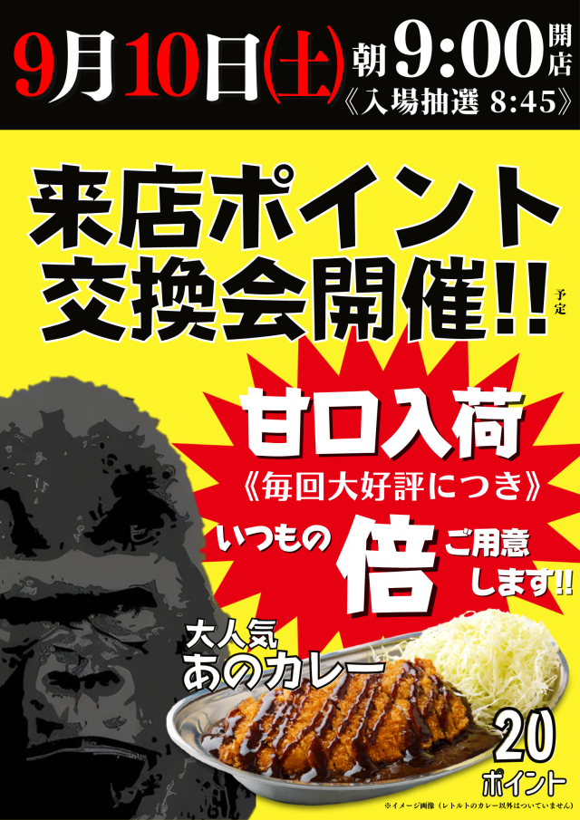 本日《あのカレー》ポイント交換会開催!!