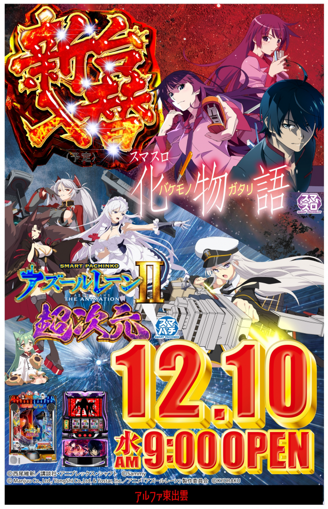 本日11月19日(水)朝9時開店!新台入替☆予定