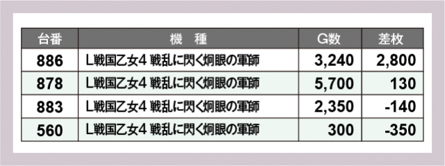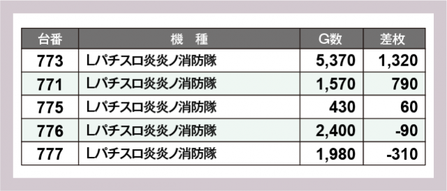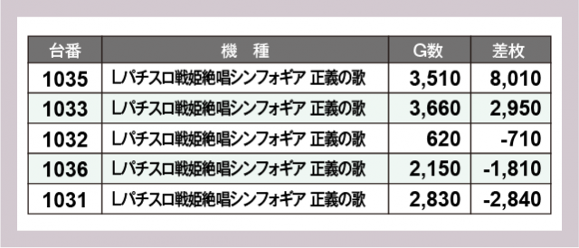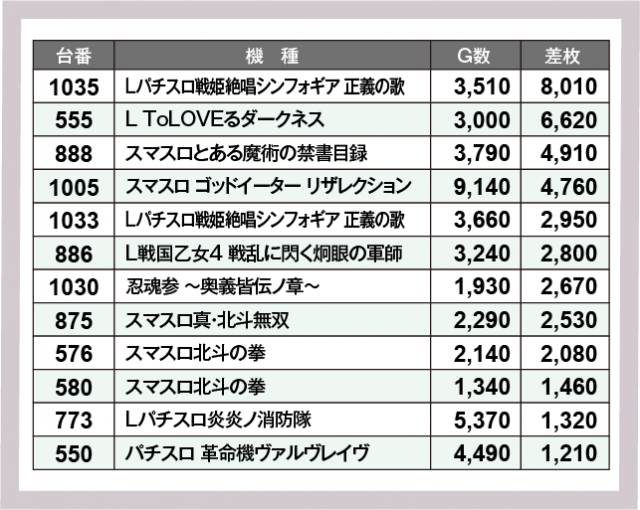 ※差枚数順に掲載しています