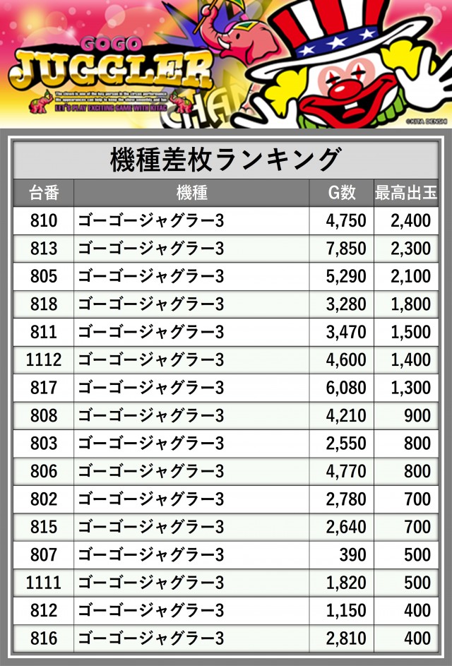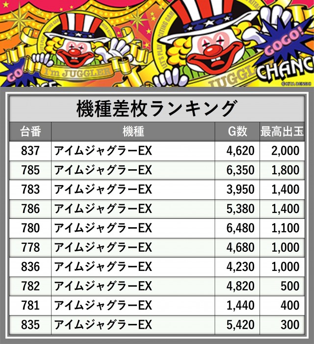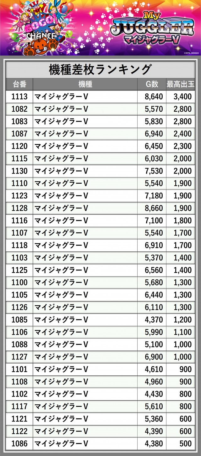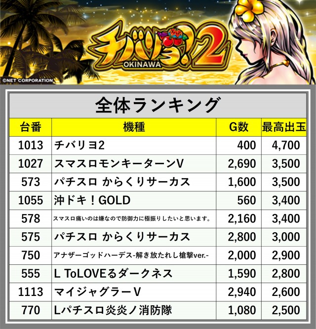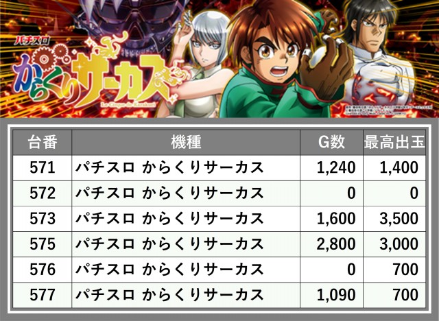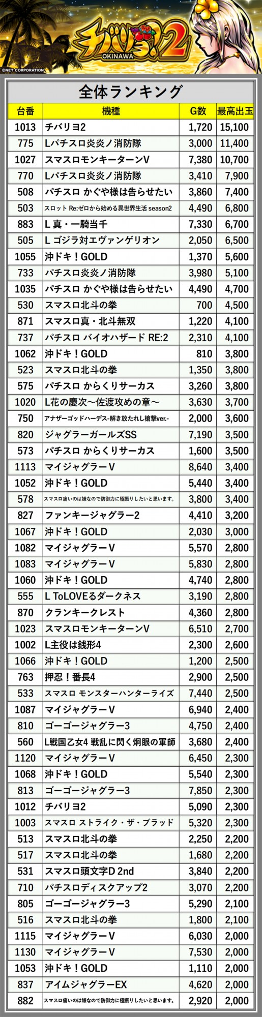 厳選された取材対象機種をはじめ、その他スロット全体から好記録が飛び出した!プレイヤーが楽しんだ1日を下記データにて振り返ってみて欲しい。