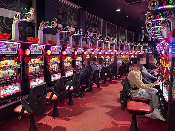 20円パチスロに目を向けると「マイジャグラーⅤ」や「アイムジャグラーEX」で華やかな光景が広がり、プレイヤーたちの笑顔から、納得の遊技をできていることがうかがえた。