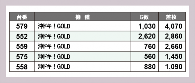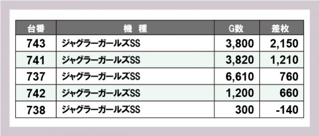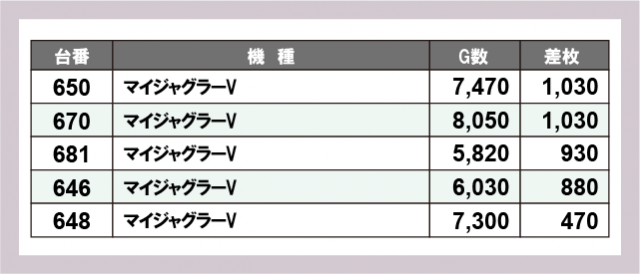 前述した通り、この日の主役は迫力の伸びを見せた主力スマスロ機と、安定感抜群のジャグラーシリーズだろう。『Lパチスロ 革命機ヴァルヴレイヴ2』が+7,840枚と圧巻のパフォーマンスを披露し、存在感を一気に示す展開に。さらに『アイムジャグラーEX』『ゴーゴージャグラー3』『マイジャグラーⅤ』などAタイプでもプラス台が続々誕生し、終日にわたりフロアは高い熱量を維持していた。ジャンルを越えて見どころが散在した一日で、次回開催への期待値も大きく高まる内容となった。