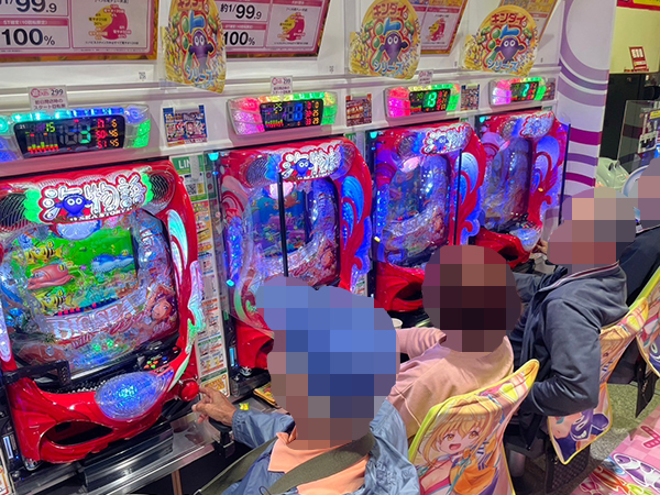 取材時は既に多くのプレイヤーが集結し、パチンコ・パチスロを問わずにぎやかな状況となっていた。