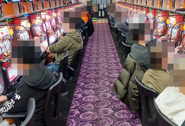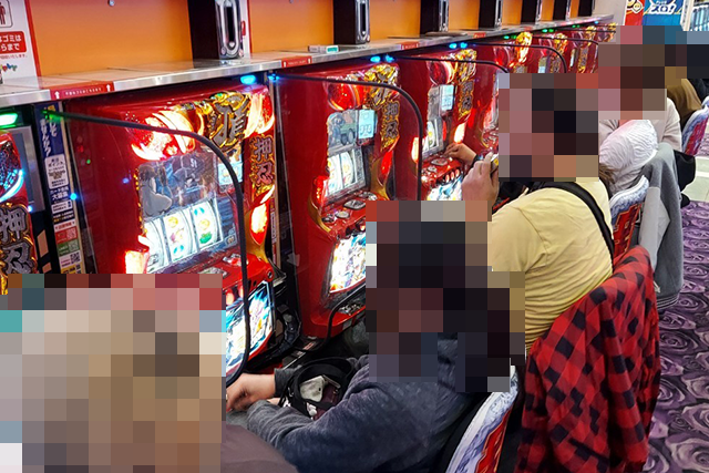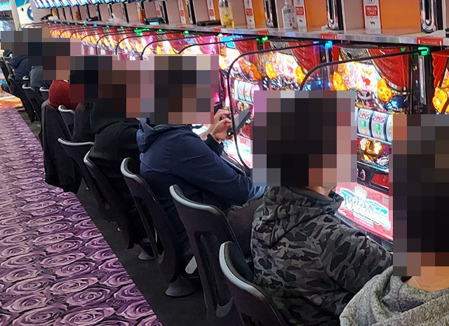盛り上がっている場所が多いなかで、とくに目立っていたのが『マイジャグラーV』!