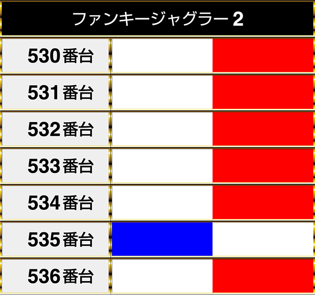 『ファンキージャグラー2』は7台あり、マイナスptになったのは1台のみであった。