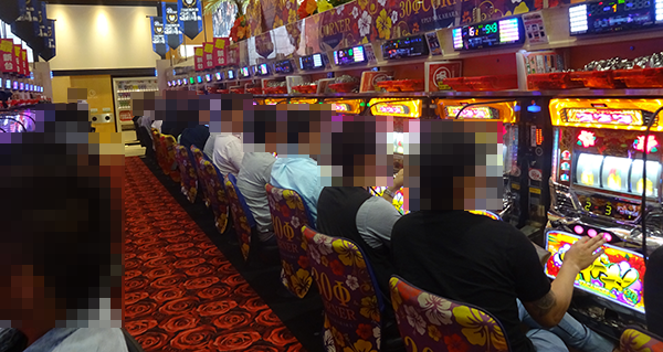 14時を過ぎた頃の20円パチスロをみると、「バジリスク~甲賀忍法帖~絆」に華麗なパフォーマンスを披露している姿を目撃。朝イチから同じ台を打っているプレイヤーもみられ、納得のできる結果となっていたように思う。