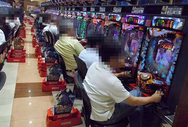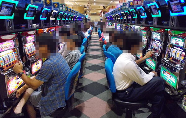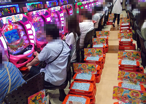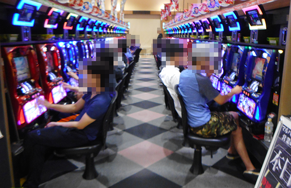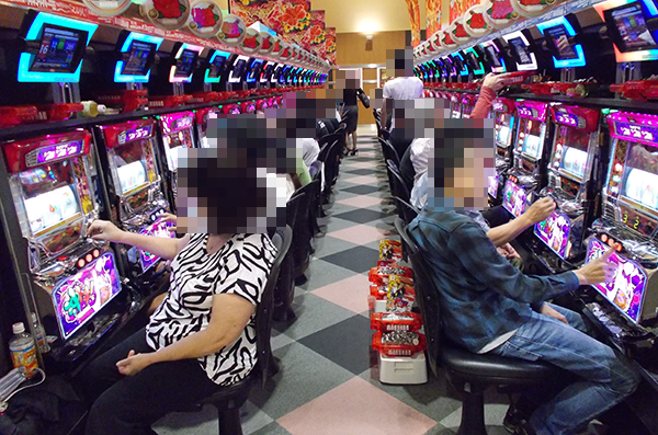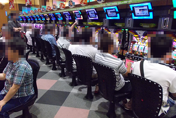20円パチスロでは、「バジリスク~甲賀忍法帖~絆」や「押忍!番長3」など、多数の機種が満席となっていた。