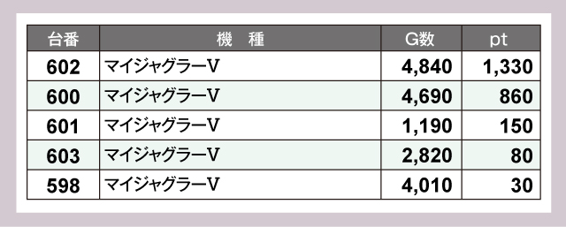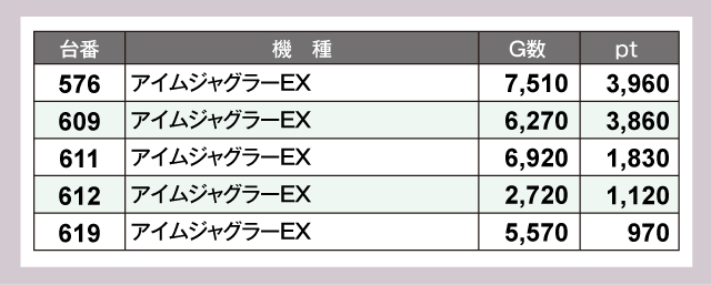 ※差枚pt順に掲載しています。