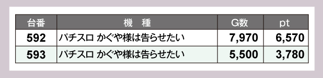 少台数の『L 東京喰種』と『パチスロ かぐや様は告らせたい』は、ともに並びで好結果が見られた。