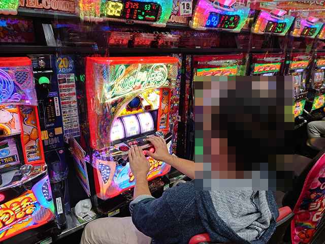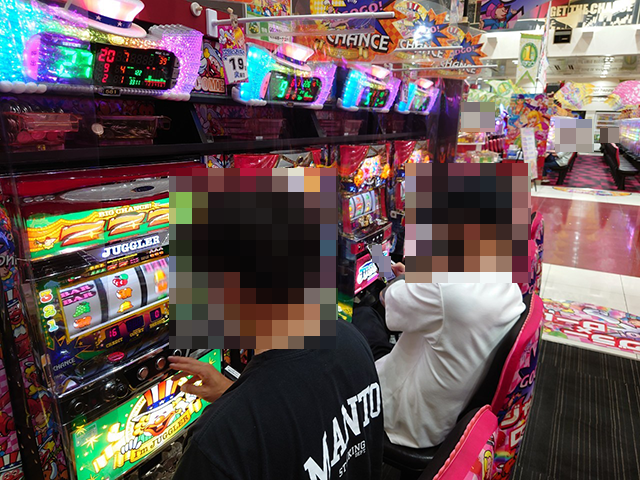 目をひかれたのは、『アイムジャグラーEX』で遊技を楽しんでいるプレイヤーの姿。