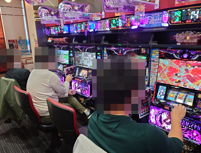 パチスロの状況をうかがうと、『SLOT劇場版魔法少女まどか☆マギカ[新編]叛逆の物語』に楽しげな光景が広がっていた。
