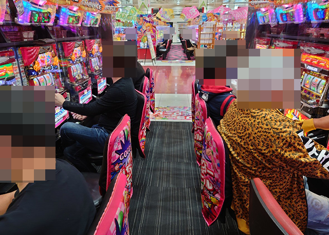 いたるところに笑顔が広がり、パチスロ全体の雰囲気はとても明るい。