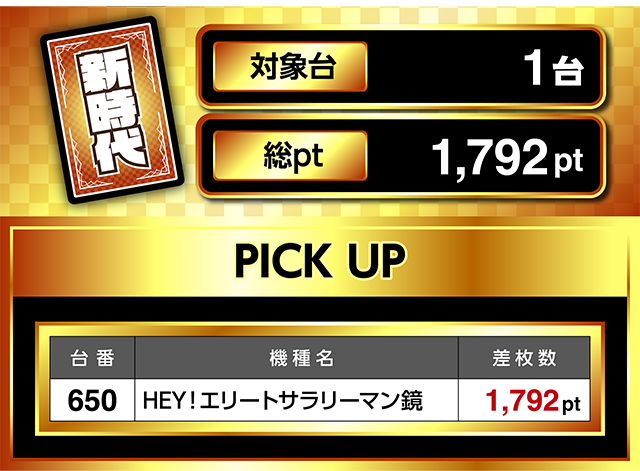 新時代は650番台の「HEY!エリートサラリーマン鏡」が1,792ptを記録した。
