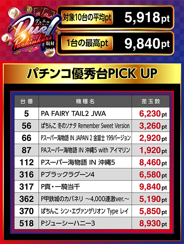 518番台の「Pジューシーハニー3」も8,900ptを上回った。