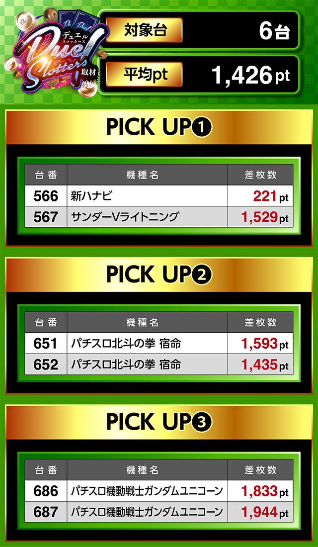 PICK UP並び・687番台「パチスロ機動戦士ガンダムユニコーン」…1,944pt