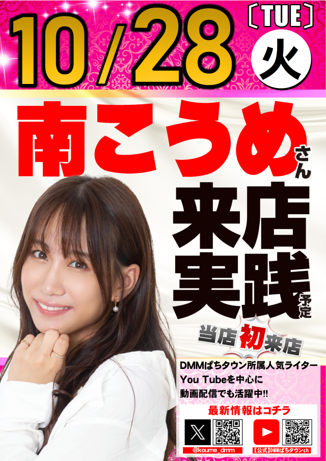 明日【南こうめ】さん来店予定♪ネオアイム増台!!