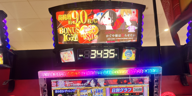 この日は、『パチスロ かぐや様は告らせたい』が万枚目前の+9,020ptを叩き出しランキングトップに。次いで『スマスロ 新鬼武者3』から+8,180pt、『スマスロスーパーブラックジャック』と『L 東京喰種』から+7,000pt超といったハイスコアが飛び出し店内を盛り上げていた。