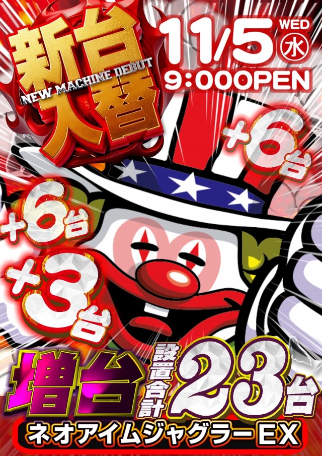 11/5(水)★全店合同総付景品配布★朝9時OPEN♪