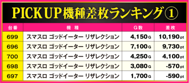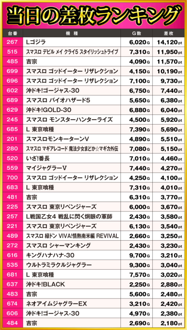 当日の差枚ランキング