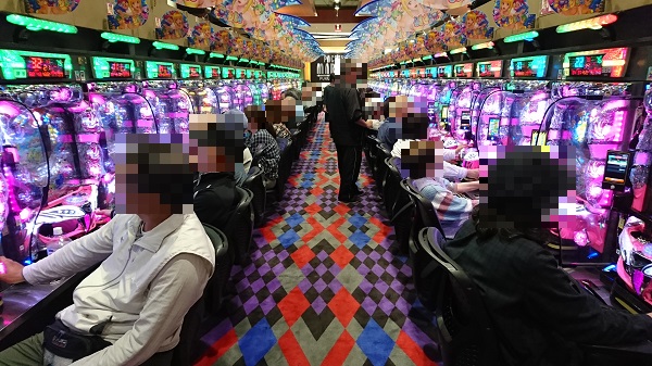 1円パチンコ・5円スロットの低貸しコーナーもほぼフル稼働。特に、種類とスペックが豊富にそろっている海物語シリーズが人気のようであった。
