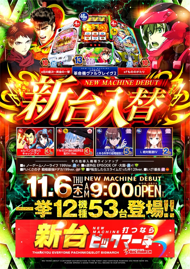 明日6日は”旗艦店”の新台入替!新台打つならビックマーチ🌈