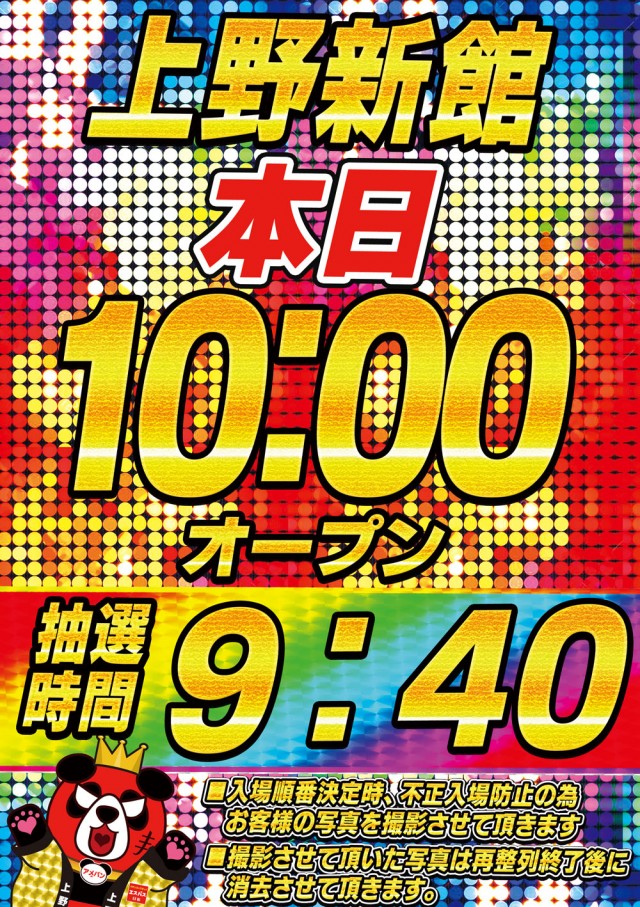 明日抽選時間9:40予定!明日もご来店お待ちしております。