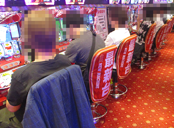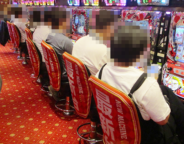 赤地に白文字といった鮮やかな新台の椅子カバー越しにみられたイキイキと遊技をおこなう姿からは、満足度の高さもうかがえた。
