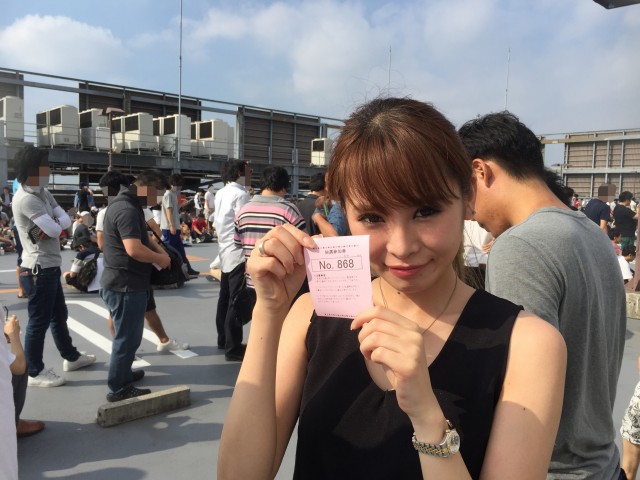 そんな心意気で整理券を貰いに屋上に向かってみると868番。