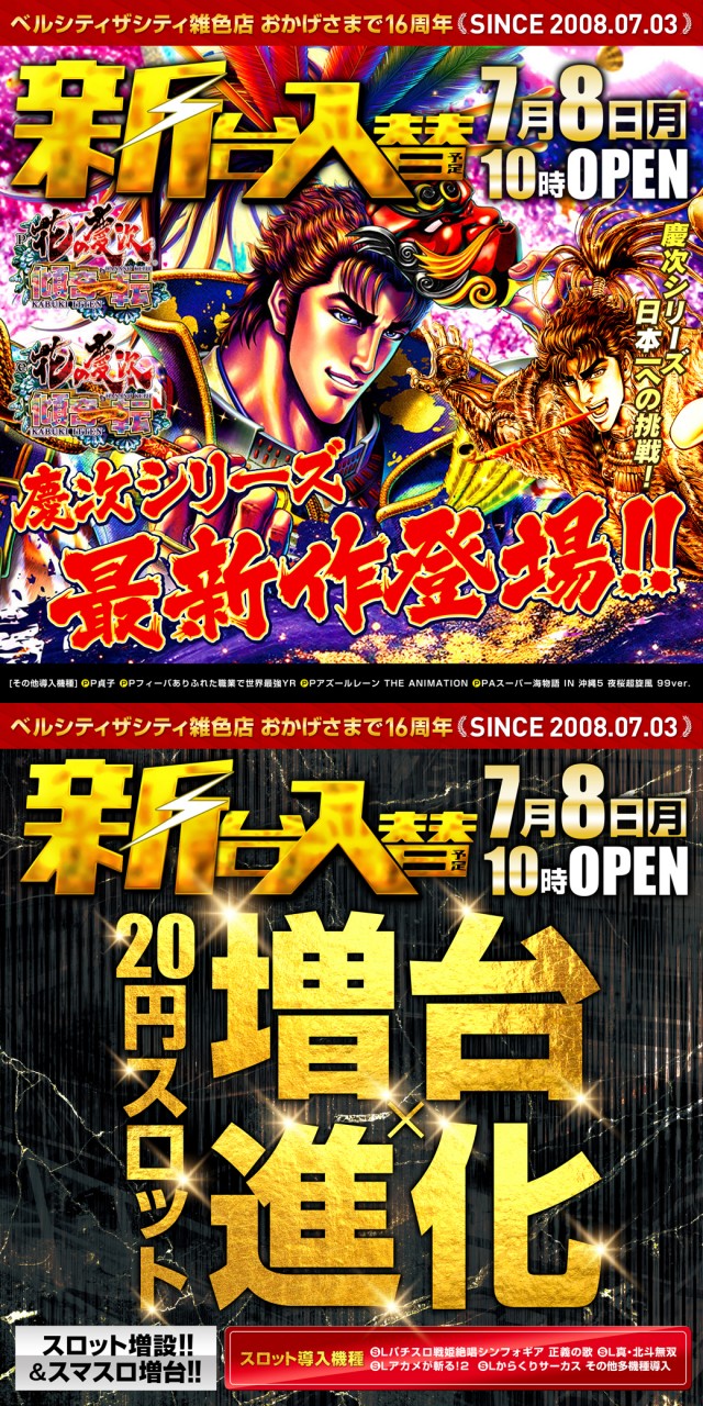 明日7月8日!!! 大型新台入替&くろいけもみみさん来店🐱