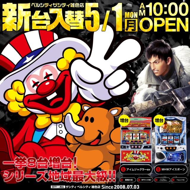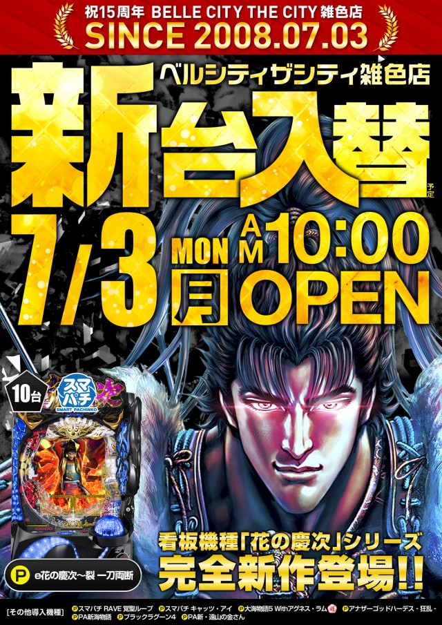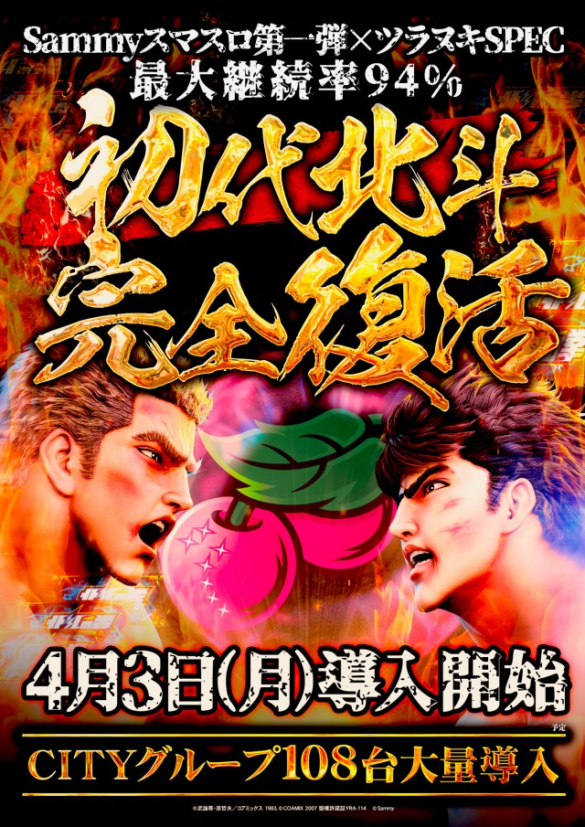 4月3日(月)地域唯一「パチスロ北斗の拳」導入済み!!!