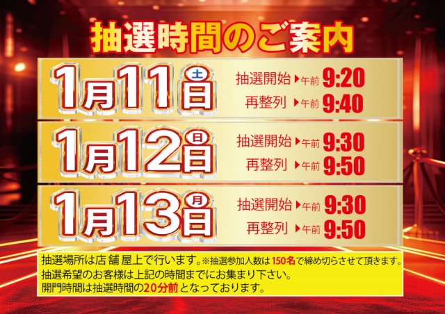 3連休最終日!本日も抽選時間はいつもと違います!