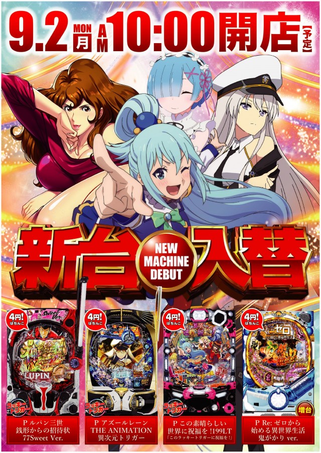 🌈9⃣月9⃣日🌈スロット人気機種導入&総付景品配布!!