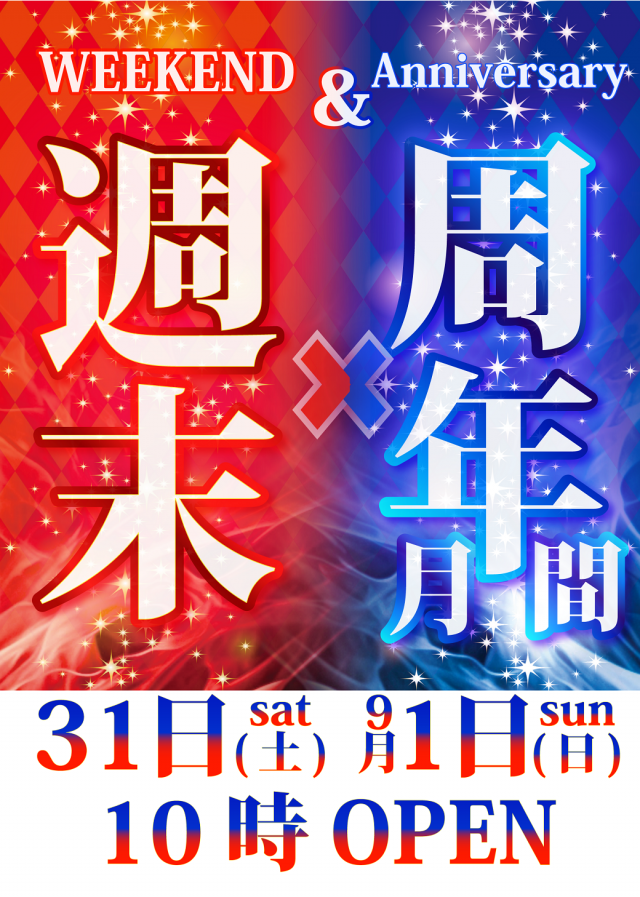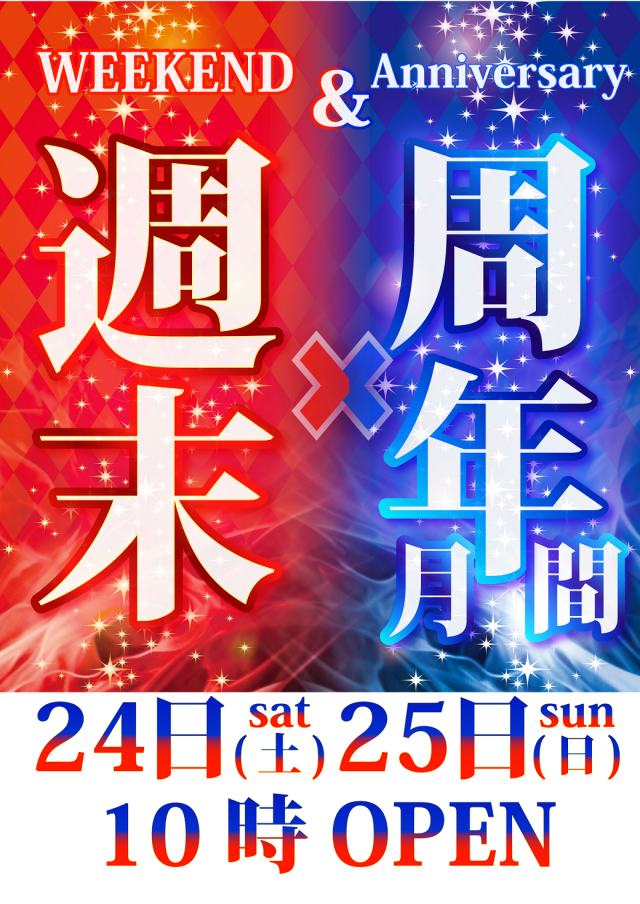 【週末】×【周年月間】24日(土)25日(日)10時OPEN