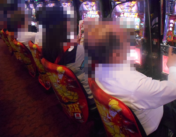 遊技台の近くに立って魅力的なシーンを眺めている姿や空き台のデータ表示機を操作する様子なども目にしている。周囲から注目を集めていることもうかがえ、にぎわうホール内においても存在感が大きかった。