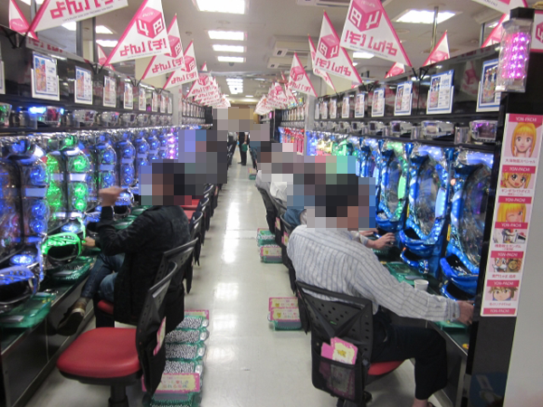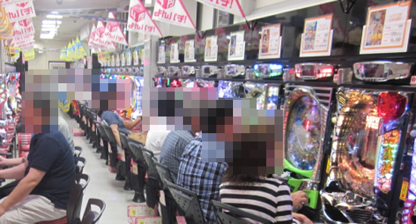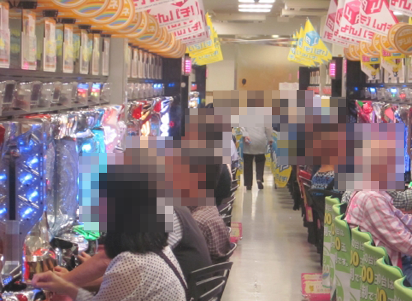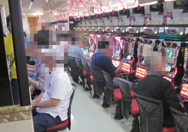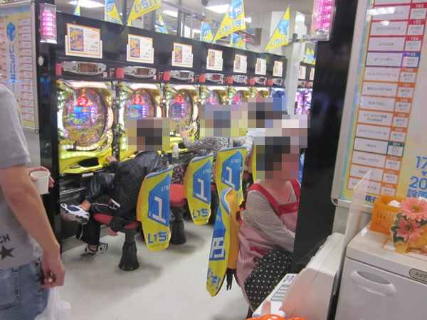 4円パチンコでも海物語シリーズを支持するプレイヤーが多く、笑顔を浮かべて遊技をおこなう姿も多数確認。