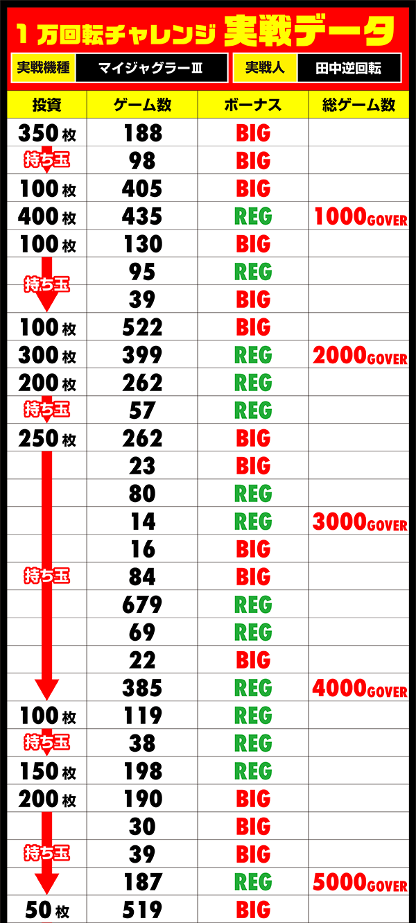 次のチャンスが巡ってきたときには、素直に1万回転達成を喜べる結果を残そうと、心に決める田中逆回転であった。