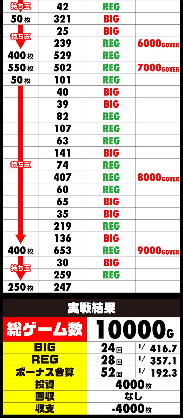 それでも、気落ちすることなく着実にレバーを叩き、15時頃には4000Gを消化。