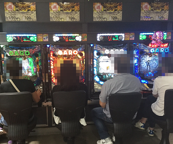 人気機種である「CR牙狼 魔戒ノ花」にも、遊技を楽しむプレイヤーは多い。