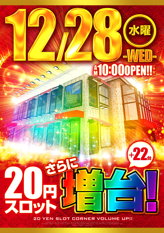 本日12月2日(金) 新生パラッツォ秋津店!20スロ増台!!