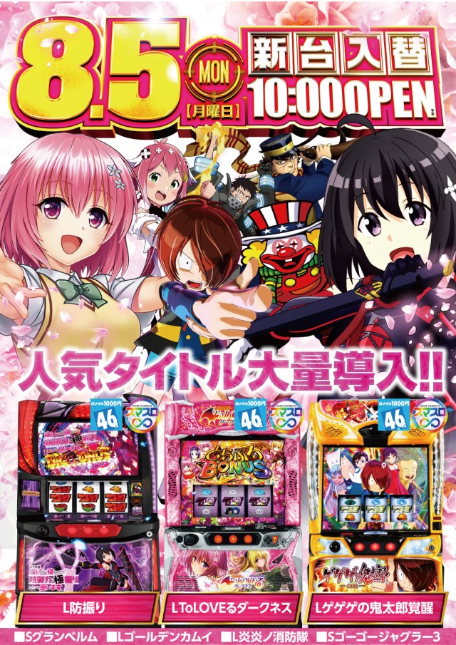 【パラッツォ秋津店】8月5日(月)新台入替!
