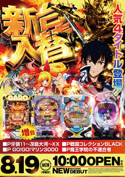 【パラッツォ秋津店】8月19日(月)新台入替!