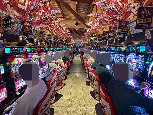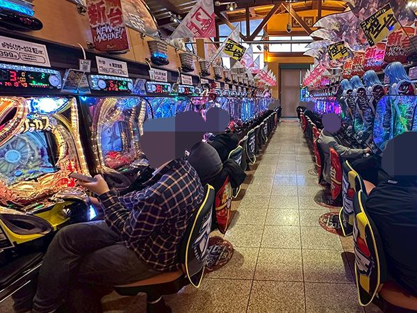 店内には老若男女を問わずプレイヤーが集合。パチンコ・パチスロの各シマから活気が感じられた。