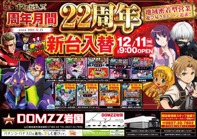 明日11日(木)🌟DOMZZ🌟新台入替🎯全館9時開店🌈🌈🌈