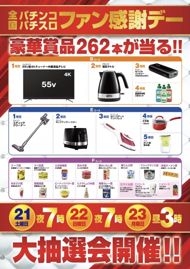 本日よる7時大抽選会開催!!