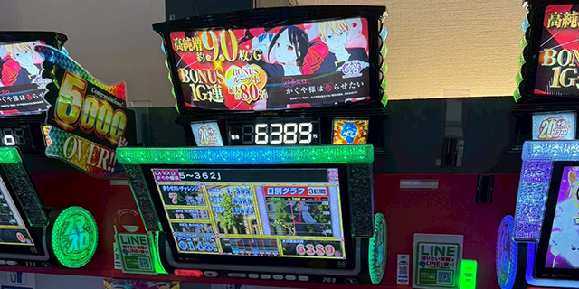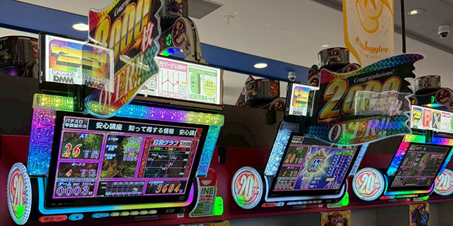 多くのプレイヤーが駆けつけたスロットコーナーは各シマ大いに活気づいていた。当日活躍した機種たちの盛況ぶりをその目に焼き付けてほしい!