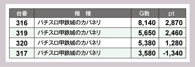 ほかにも『パチスロ甲鉄城のカバネリ』から4桁ptプラスの優秀台が複数発生し、プレイヤーたちを楽しませていた。