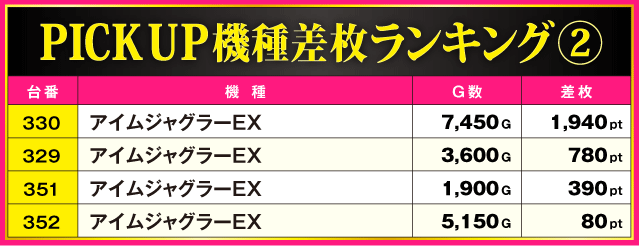 ※差枚pt順に掲載しています。
