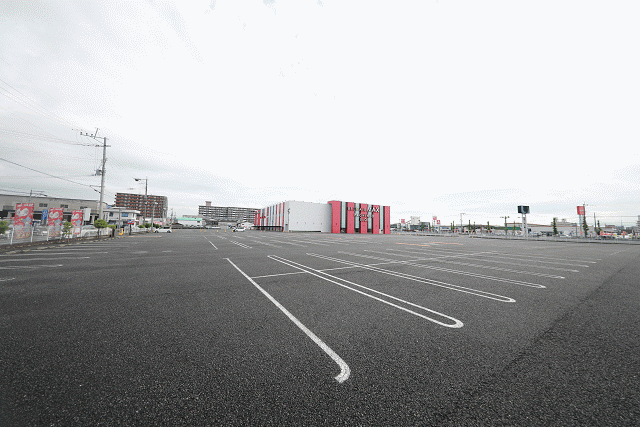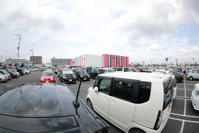 広大な店舗の周囲に広がる855台収容の大駐車場はその広さを改めて感じさせられる。
