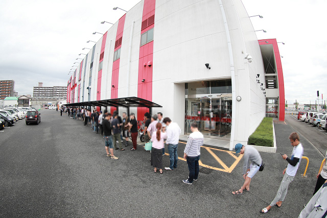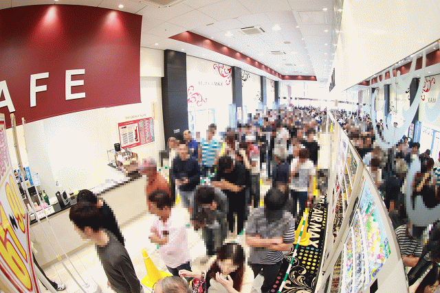 勇むファン、群れるファンと息つく間もなく店内へと吸い込まれる。