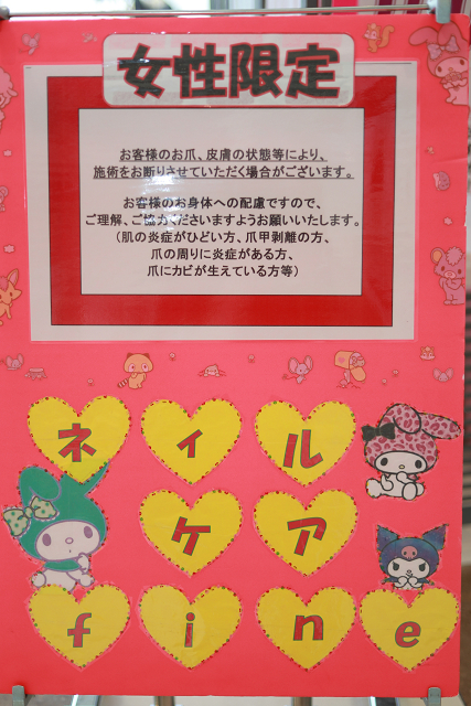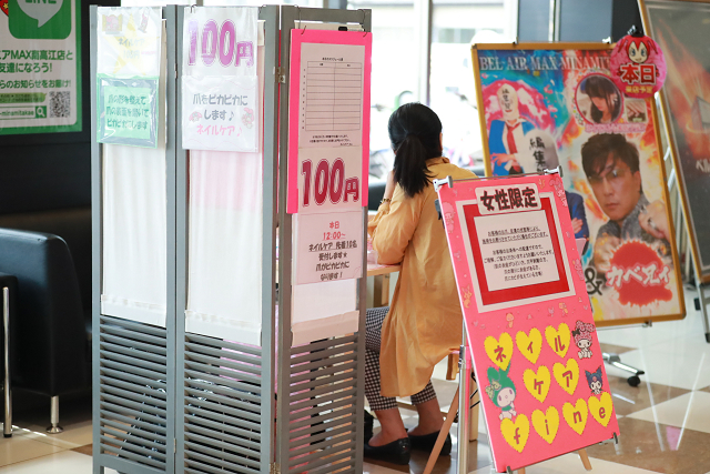 お洒落さんのネイルをピッカピカにメイクアップしてくれるサービスがこちらもワンコイン!「驚き!桃の木!!山椒の木!!!」的なサービスだけに、綺麗なおネイサンネイルアーティストが休む間もなく
